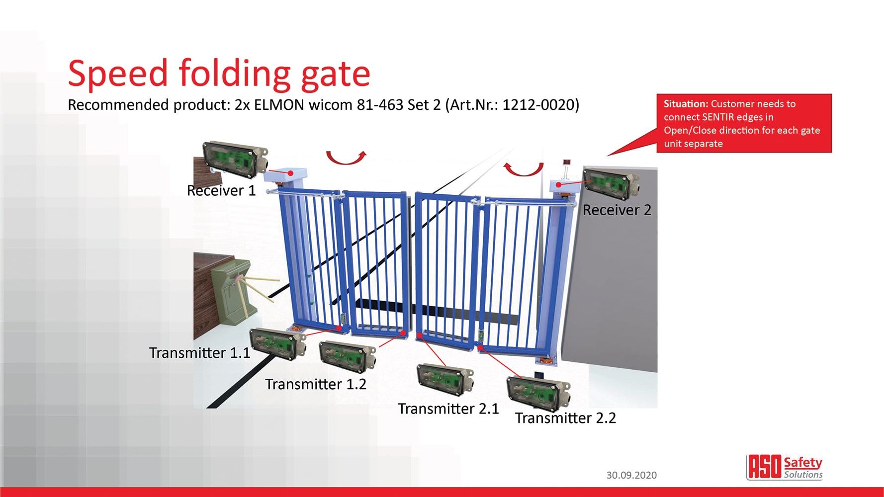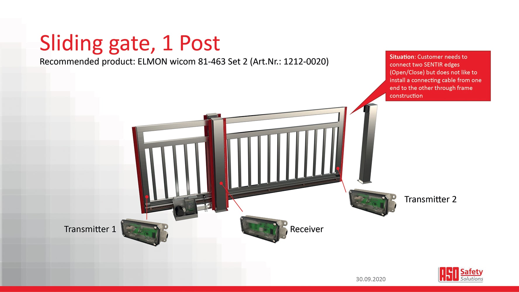 Bluetooth wireless edge transmission system perfectly compliments the ASO SENTIR edge range of safety devices for doors & gates. Thanks to the user friendly, simple programming procedure ELMON wicom saves you time and money on-site. Utilising tried & tested Bluetooth technology, ELMON wicom enables secure, reliable communications between transmitter & receiver. With dual channel inputs & outputs ELMON wicom provides maximum flexibility for all types of doors & gates.