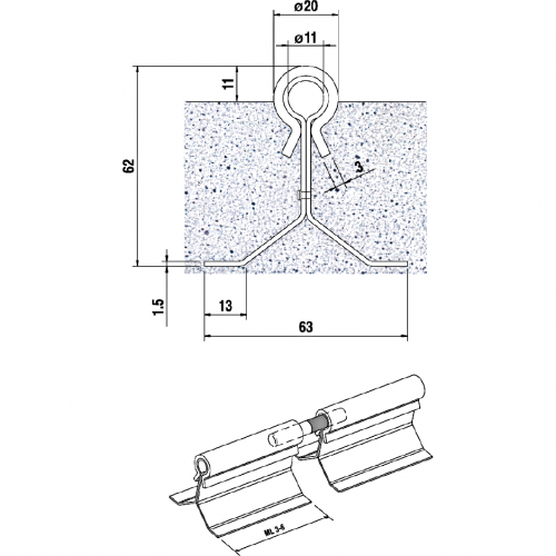 New Omega Z3 concrete-down ground track for sliding gates and industrial doors. 20mm round bar track for O groove wheels.