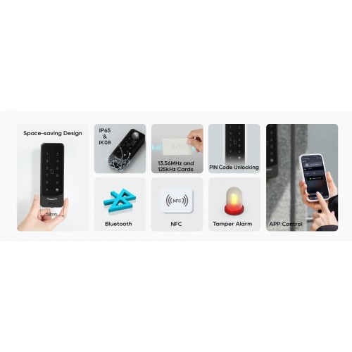 - It supports multiple door entry methods: including RFID cards, PIN codes, NFC, Bluetooth, and mobile app access, giving users flexibility and convenience.