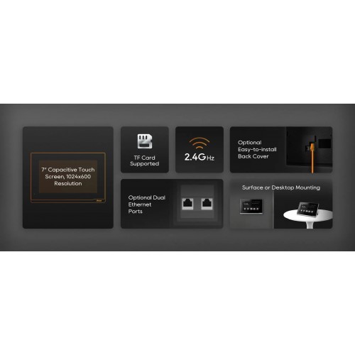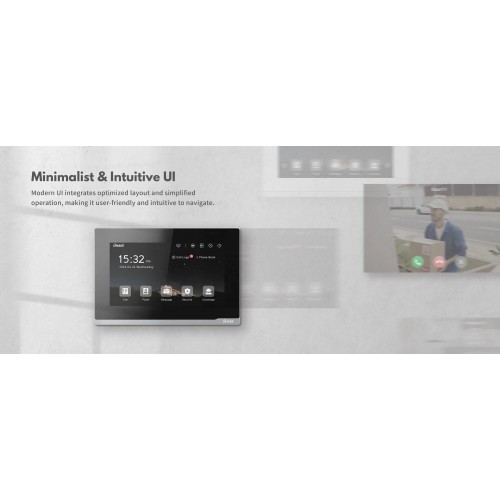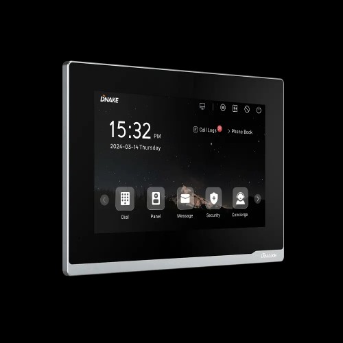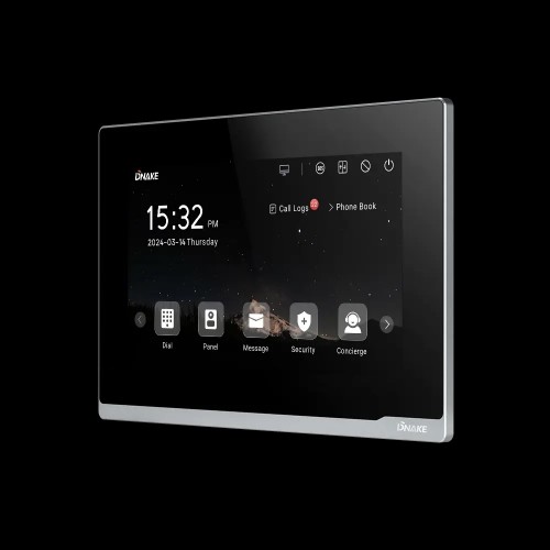 - Available for surface or desktop mounting: the DNAKE 7″ Indoor Monitor provides a compact yet powerful solution for homes, offices, or commercial buildings seeking an efficient, connected, and easily managed security and automation system.