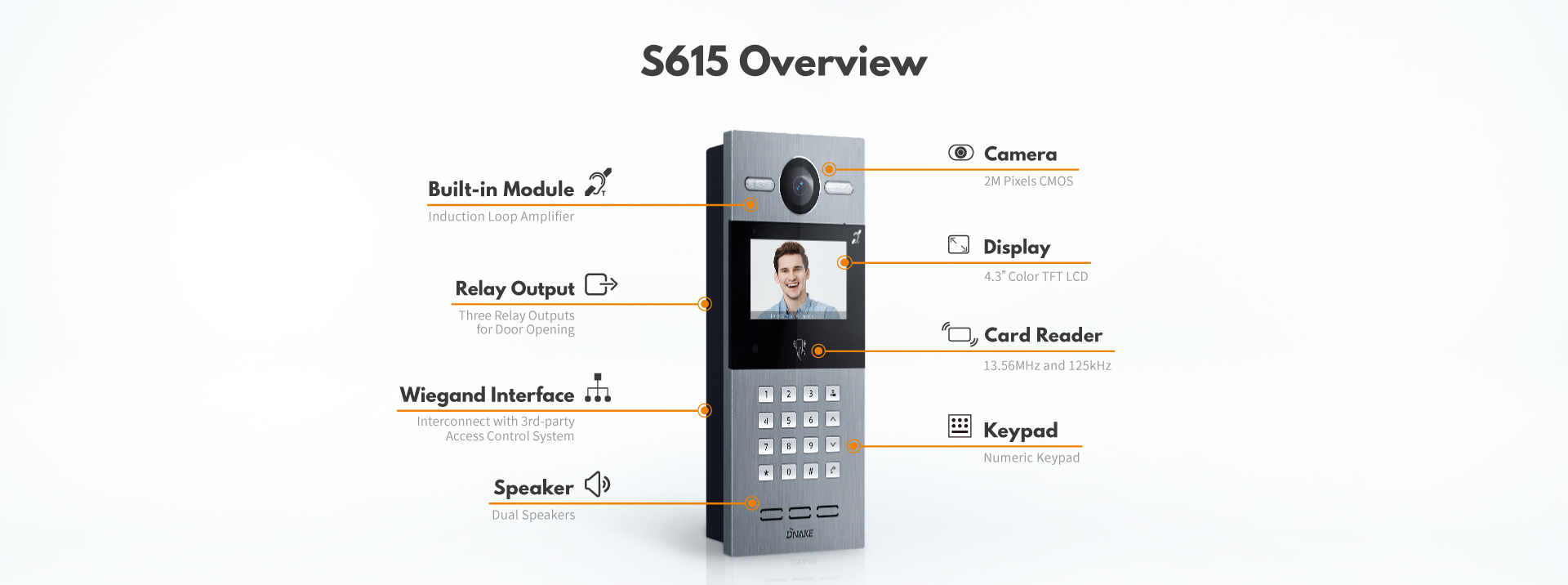 DNAKE S615 provides an integrated security solution. It enables users to open the door with facial recognition, IC & ID card and PIN Code. It also makes it easy to video call with an indoor monitor and mobile app, for a convenient and secure home life.