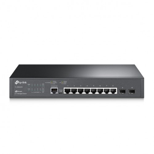 The JetStream TL‑SG3210 is a compact L2+ managed Gigabit switch designed for small to medium business access networks that require reliable performance, enhanced security and flexible uplink options. It features 8 × Gigabit RJ45 ports and 2 × Gigabit SFP uplink slots, providing efficient copper connectivity with optional fibre uplinks for network expansion. The switch supports a comprehensive Layer 2+ feature set, including static routing, VLAN segmentation, enterprise‑grade QoS, IGMP snooping and advanced security features such as ACLs, DHCP snooping, IP–MAC–Port binding and 802.1X authentication, helping to ensure stable and secure traffic handling. Integrated with Omada SDN, the TL‑SG3210 enables centralised cloud management via the Omada Controller or app, while also supporting standalone management through web GUI, CLI, SNMP and RMON, making it well suited to both centrally managed and independent small‑scale network deployments.
